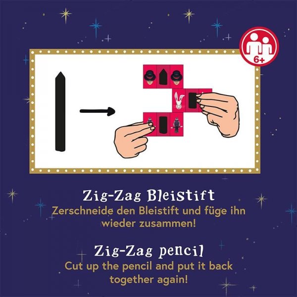 Zerschneide den Bleistift und füge ihn wieder zusammen! Mit diesem Trick kannst du einen Stift mithilfe einer Box auf unglaubliche Weise in drei Teile zerschneiden und ihn anschließend wieder zusammenfügen! Die leicht verständliche, bebilderte Anleitung sowie das Video-Tutorial mitTikTok-Zauberer MARV zeigen dir, worauf es bei dieser verblüffenden Illusion ankommt. Zusätzlich erhältst du 5 Tickets, mit denen du zu deiner eigenen MAGIC SHOW einladen kannst.